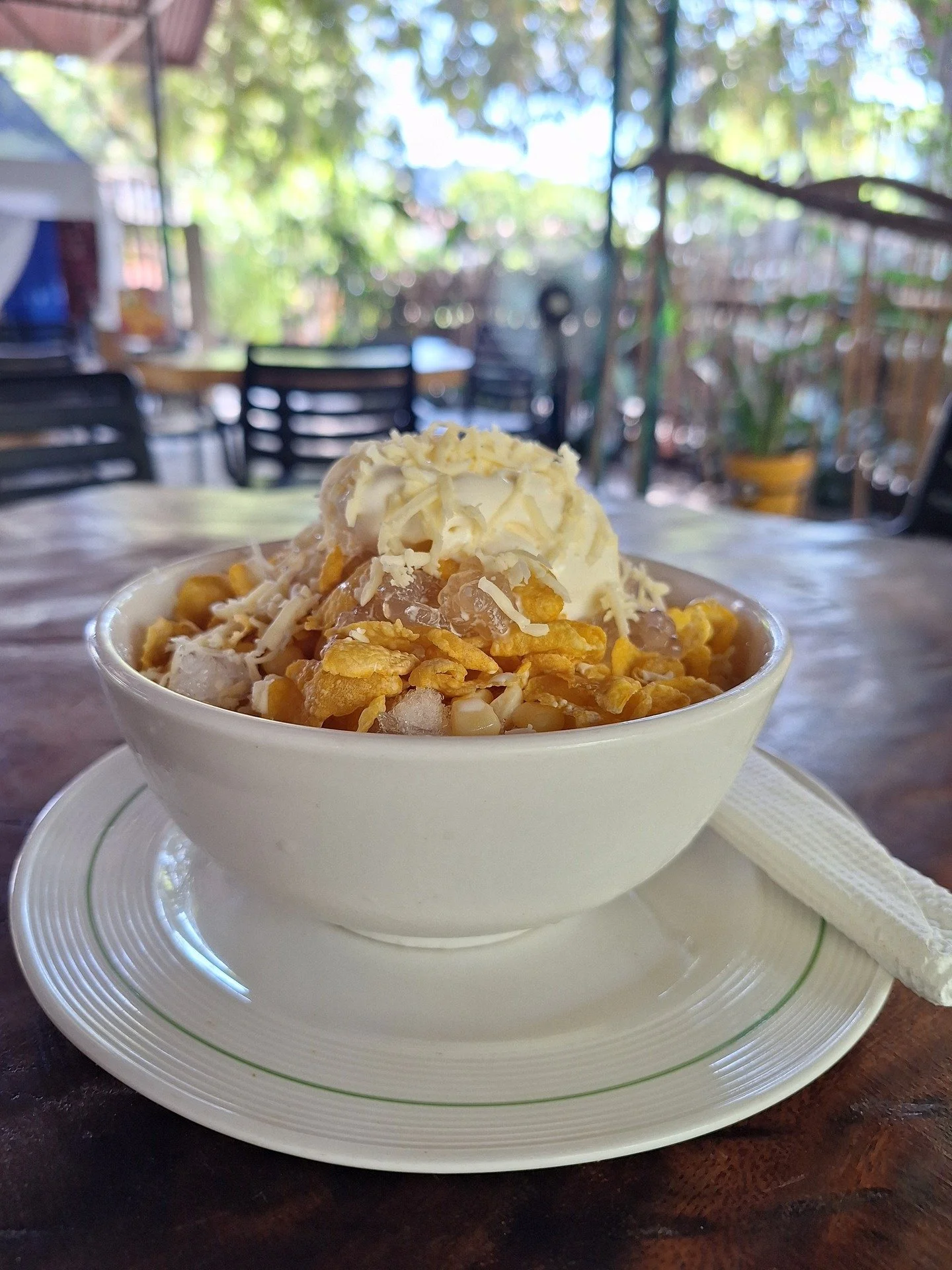 The outdoor cafe was built using natural materials, from stone flooring to bamboo tables. An outdoor dry bar was constructed from locally-sourced hardwood from sustainable woodlands. Efficient equipment is continually employed, including two commercial eco kalans (portable clay stoves), and an energy-saving professional oven.